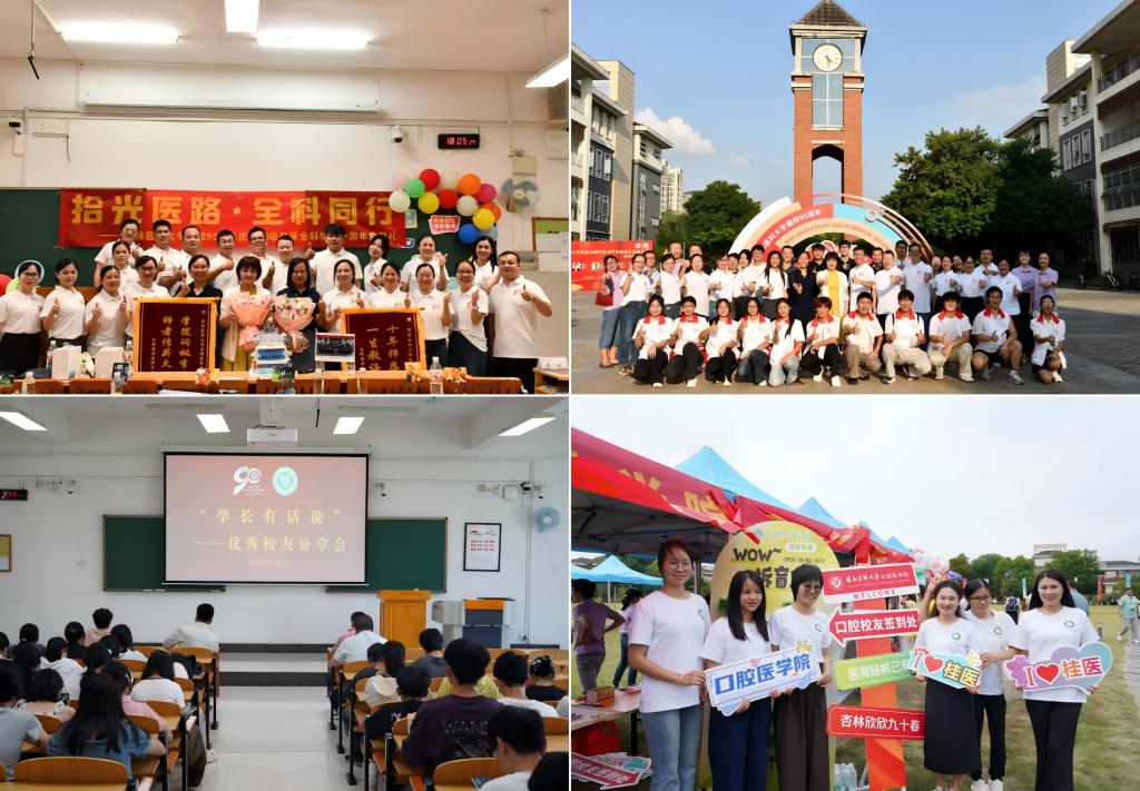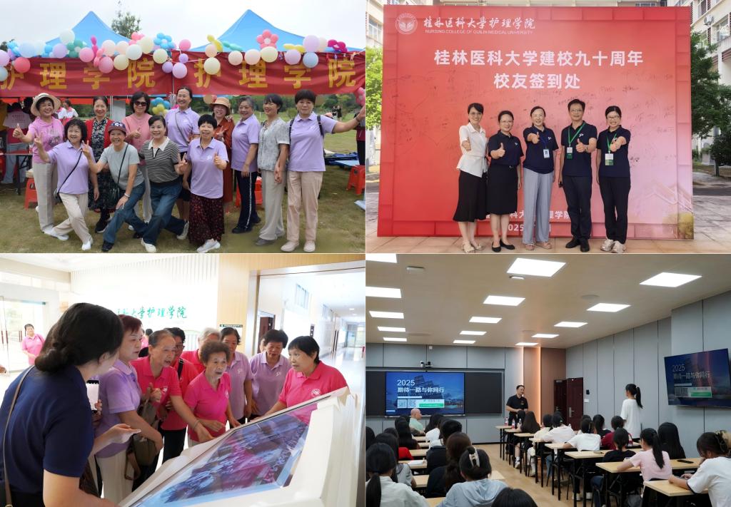 人工智能医学院策划了“章”显气质集章打卡活动,将学校的历史积淀与学院的专业创新深度融合,让“AI赋能文化”从课堂走向校园实践;基础医学院举办“探索奇妙世界”生命科学科普开放日活动,开展“九秩医路·翰墨寄情”主题祝福语征集并精心制作展示于学院门厅,表达师生对学校九十华诞最诚挚的礼赞;全科医学院召开“做人·做事·做学问”讲座和“九秩芳华传薪火,全科仁心筑未来”校友座谈会,共话医者初心与传承;第一临床医学院推出“校友回家”系列活动,包括师恩茶话会、时光信箱、重温上学路及参观漓东新院区,并以“时光回响·医路有歌”校友歌会唱响医路情怀;口腔医学院在签名合影和寄语环节的基础上,增设抽“盲盒”趣味活动,送出定制纪念品,营造欢乐氛围;公共卫生学院开展“知校爱校荣校知识大闯关”活动,通过趣味答题和互动挑战,增强校友归属感;护理学院组织校友探访文化展厅,举办“护梦九十年·校友说”故事分享会及学术报告,吸引千余人次参与;药学院举办“九秩芳华·药韵长存”校友返校日活动,设置签名墙,赠送纪念品,并承办校企合作论坛,汇聚医药企业与医疗机构共谋发展;检验与生物技术学院开展学术培训启智、校友分享赋能、暖心捐赠传情、校友重逢聚力等系列活动,通过学术培训拓宽学子视野,依托校友分享锚定成长方向,更获校友暖心反哺……一场场跨越山海的重聚,在欢声笑语中重温了青春,更在深入交流中厚植了情谊,将每一位校友的个体记忆熔铸为共同的桂医印记,深化了校友与母校的情感联结。
