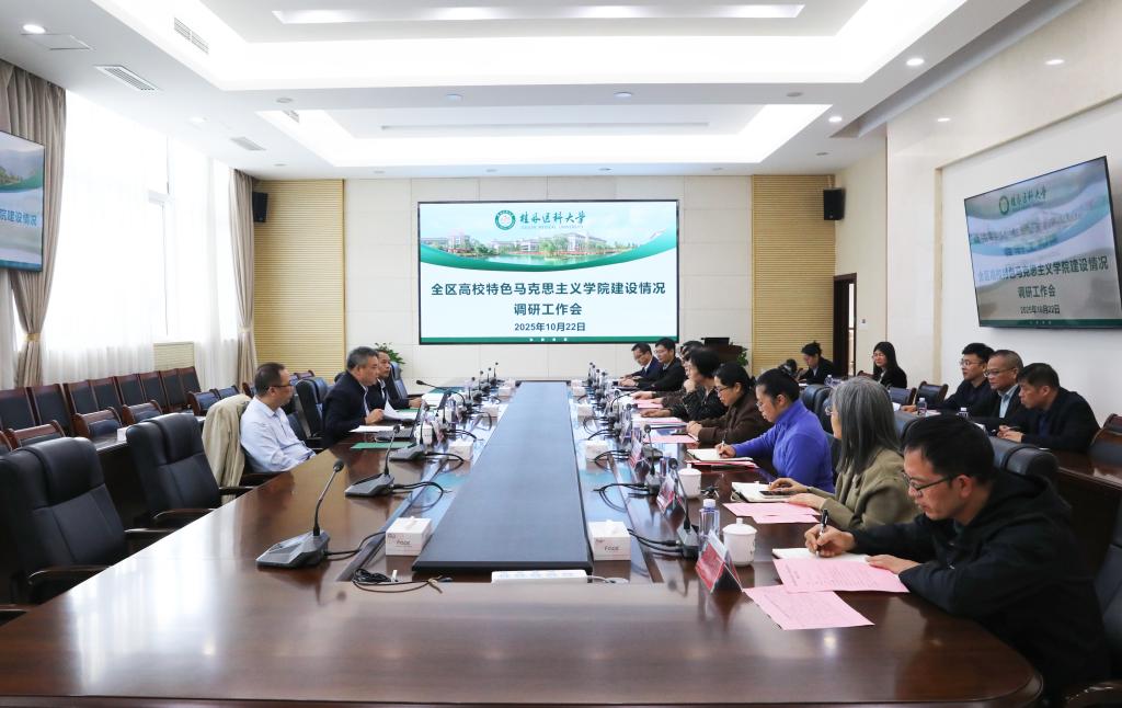 10月22日下午,以广西民族大学党委副书记陈铭彬教授为组长的全区高校特色马克思主义学院建设情况调研组一行莅临我校调研指导。我校党委副书记陈旭,相关职能部门主要负责人,马克思主义学院班子成员、思政课教师代表及学生代表参加了调研活动。
