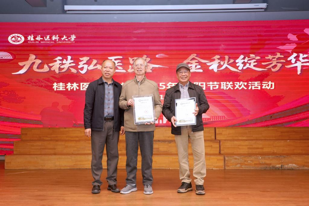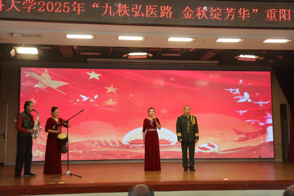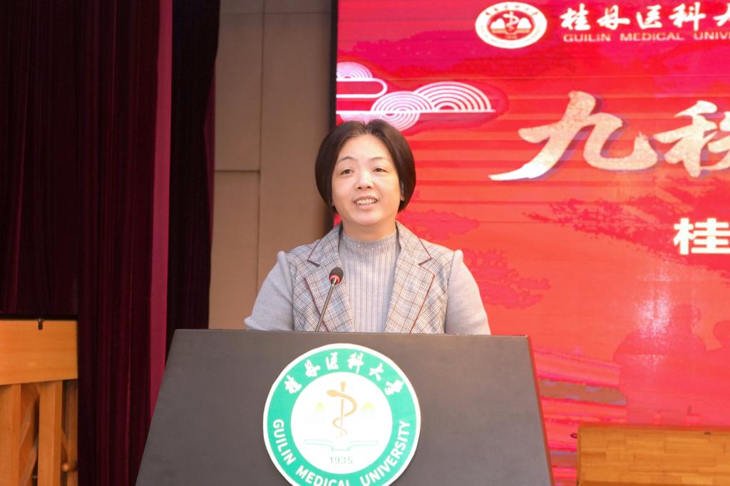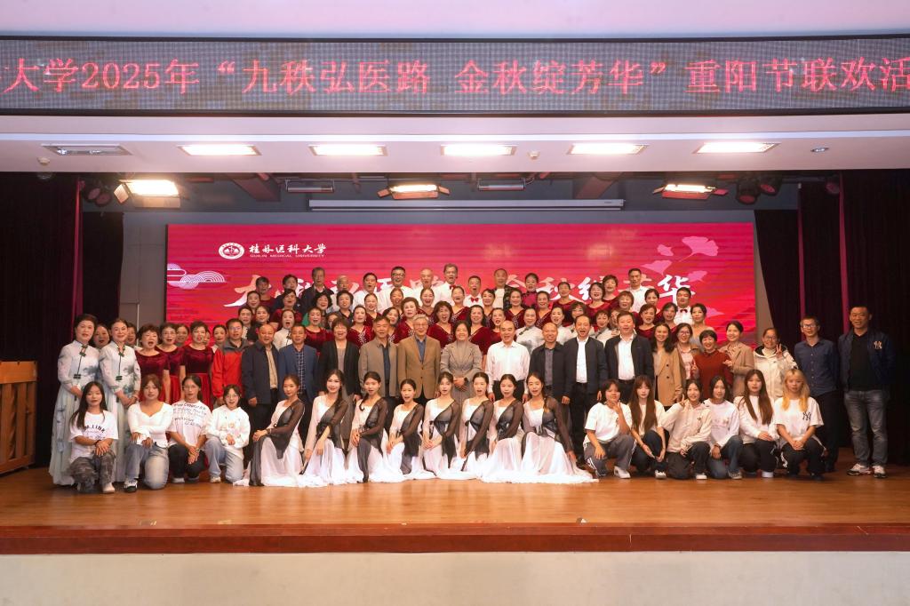 金桂飘香漫重阳,浓情关怀送安康。为弘扬中华民族尊老、敬老、爱老、助老的传统美德,丰富离退休职工的精神文化生活,10月29日上午,我校在乐群校区综合楼举办“九秩弘医路 金秋绽芳华”重阳节联欢会。学校党委副书记、校长曾小云,党委常委、副校长覃克强及学校有关职能部门、二级学院负责人与离退休老同志欢聚一堂,共庆2025年重阳佳节。