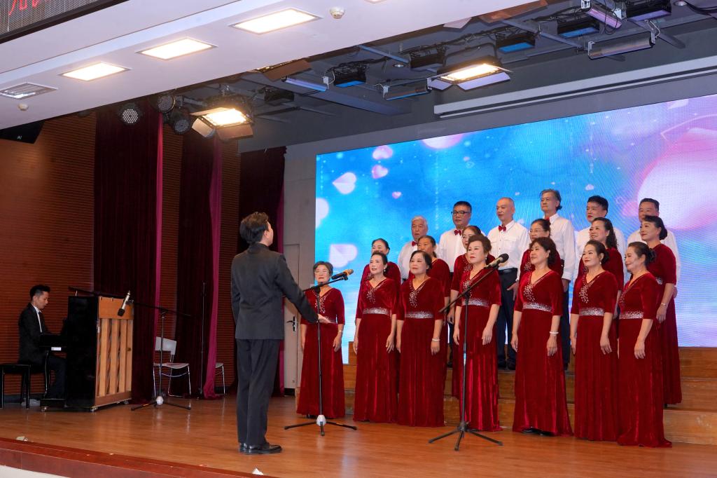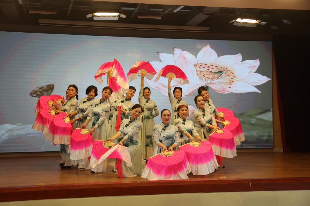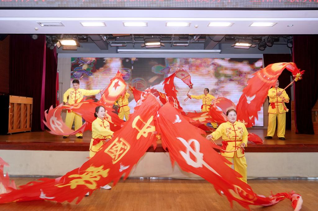 随后,老同志们精神饱满、载歌载舞,献上一台精彩的文艺汇演。文艺汇演在合唱《我和我的祖国》中拉开序幕,老同志精心编排的合唱、独唱、舞蹈、舞龙、朗诵、旗袍走秀等节目轮番上阵,表达了老同志对党和祖国的热爱之情,展现了学校离退休教职工初心不改、昂扬向上、老有所为、老有所乐的精神风貌。大学生艺术团、街舞协会带来的优雅古典舞和炫酷街舞,赢得观众阵阵掌声。联欢会上,节目精彩纷呈,还穿插了抽奖互动环节,洋溢着喜庆祥和的节日氛围。在全体人员高唱《歌唱祖国》的嘹亮歌声中,联欢会圆满落幕。