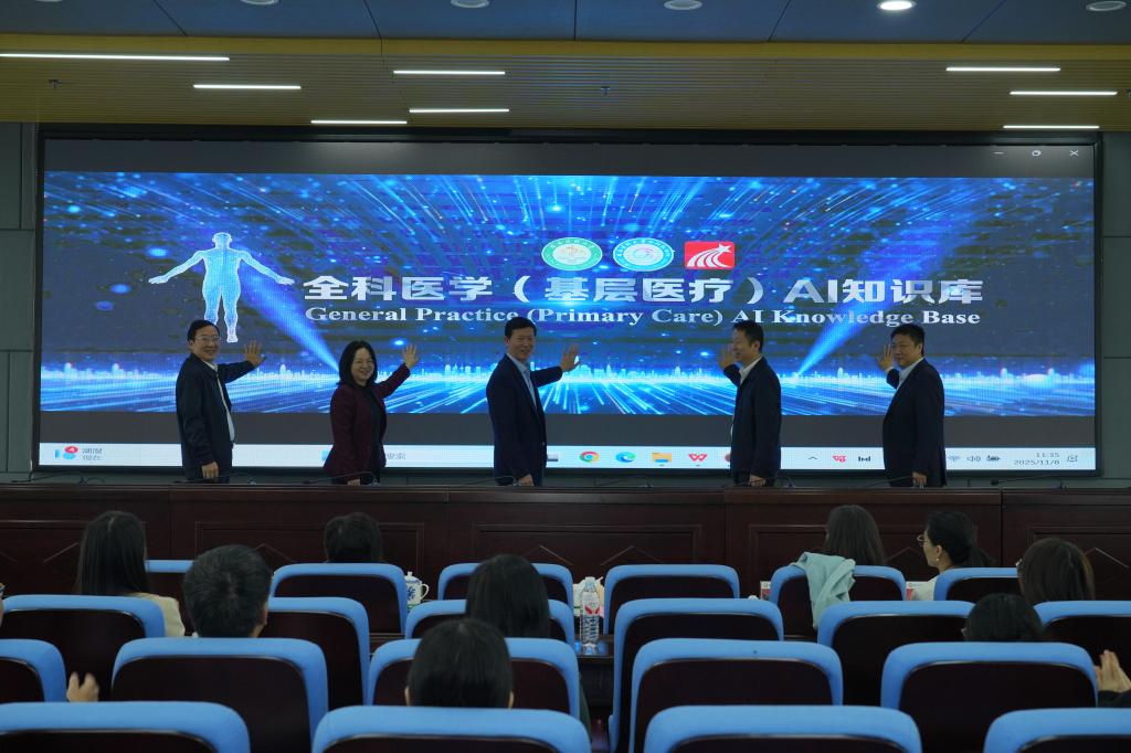 会议期间,在我校副校长陈健教授等嘉宾的共同见证下,举行了“全科医学AI知识库”发布仪式。该平台作为“AI+医学教育”的重要落地成果,集成智能检索、个性推荐与在线测评等功能,旨在提升基层医学人才培养质量,助力构建适应基层需求的医学教育资源体系。