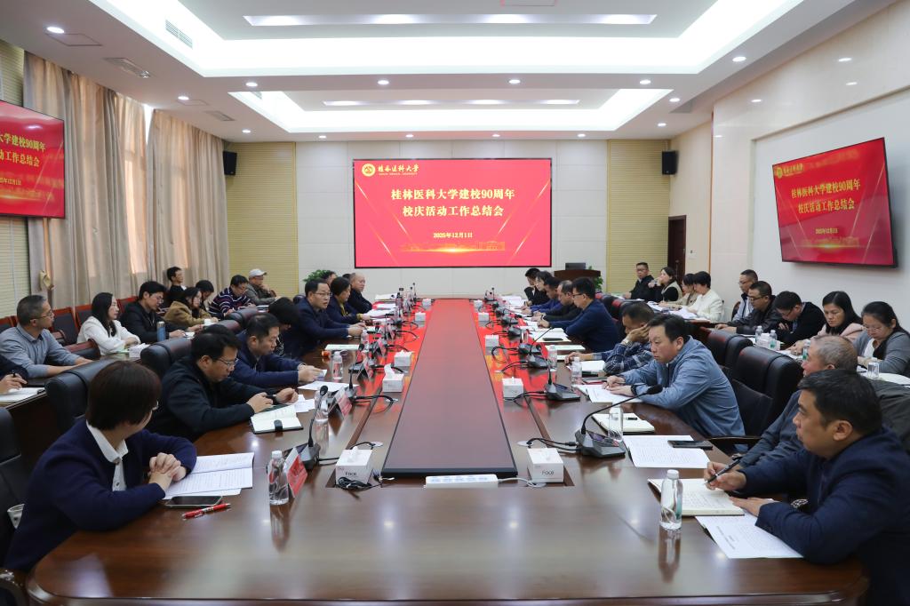 马献力作总结讲话。他表示,建校90周年校庆活动的成功举办,系统回顾了学校九秩奋进历程,极大凝聚了人心士气,锤炼了干部队伍,提炼了宝贵的精神财富,显著提升了学校的社会声誉,全面激发了全校师生自强不息、追求卓越的内生动力。他对全校师生员工提出三点要求:一要将校庆凝聚的发展共识转化为服务“十五五”规划的强大动能;二要将校庆汇聚的八方资源转化为提升核心竞争力的显著优势;三要将校庆焕发的精神力量转化为以文化人的持久定力。他强调,要牢记为党育人、为国育才的初心使命,以自治区“十五五”规划为新的航标,着力培育更多名师英才,创造更多服务人民健康的卓越成果,在迈向百年学府的征程中镌刻桂医人的担当,努力将桂林医科大学建设成为特色鲜明、在国内外有良好声誉的高水平医科大学,为谱写中国式现代化广西篇章作出新的更大贡献!