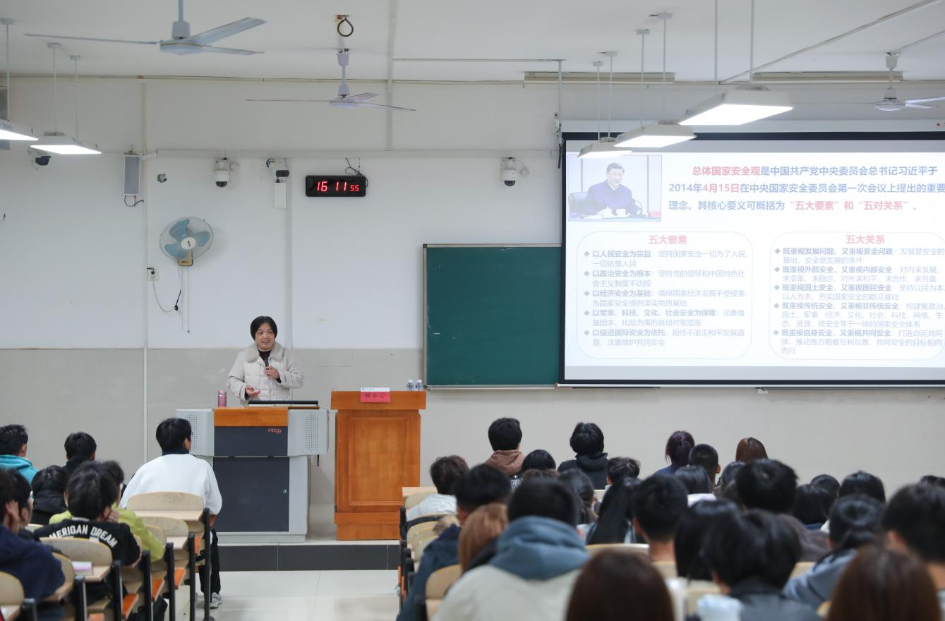 课堂上,曾小云结合医学院校立德树人与医疗卫生工作实际,深入解读“平安中国”与“健康中国”两大国家战略的时代背景与实践要求,紧密围绕坚定不移贯彻总体国家安全观,重点讲述了建设更高水平平安中国的重大意义、平安中国建设取得的显著成绩、建设更高水平平安中国的系统部署,通过详实的数据与鲜活的案例,引导学生深入理解平安中国建设所彰显的政党优势、制度优势、发展优势、治理优势。