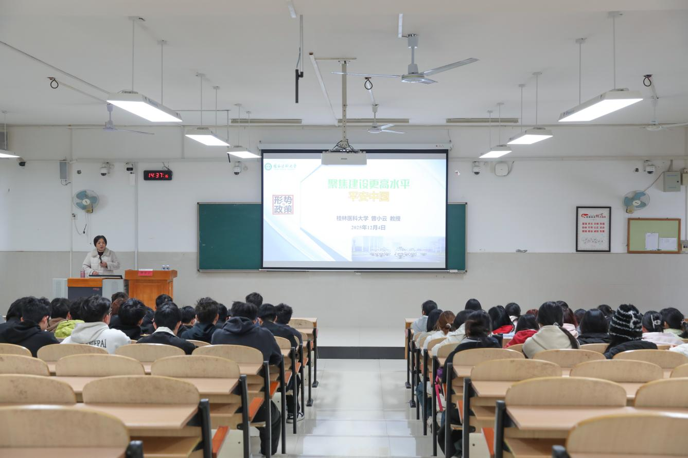 “我们医学生能为建设更高水平的平安中国做什么?这是时代赋予我们的学习任务,也是我们的人生课题。”12月4日下午,学校党委副书记、校长曾小云走进思政课课堂,为2024级临床医学(全科医学方向)本科1班、2025级卫生检验与检疫本科班、2025级智能医学工程本科班学生讲授题为“聚焦建设更高水平平安中国”的“形势与政策”专题思政课。