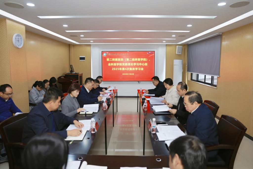 12月5日,第二附属医院(第二临床医学院)、全科医学院召开党委理论学习中心组2025年第4次集体学习(扩大)会。校党委副书记、校长曾小云,党办校办主任到会巡听旁听指导。医院、全科医学院领导班子、党委委员等全体中心组成员参加会议。会议由医院党委书记主持。