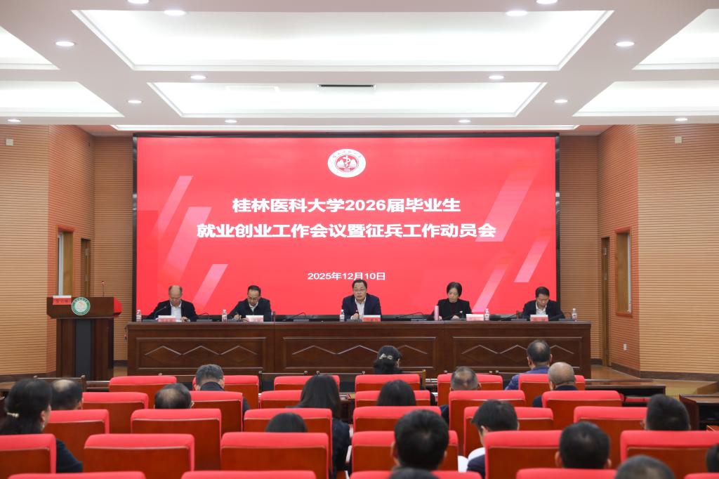 12月10日下午,我校在明德楼101会议室召开2026届毕业生就业创业工作会议暨征兵工作动员会。学校党委书记马献力、校长曾小云等在家校领导出席会议,学校毕业生就业创业工作领导小组成员、学校征兵工作领导小组全体成员,各院系主要负责人、分管学生工作负责人,2025届和2026届毕业班辅导员以及学生工作部(处)、武装部全体人员参加会议。会议由副校长覃克强主持。