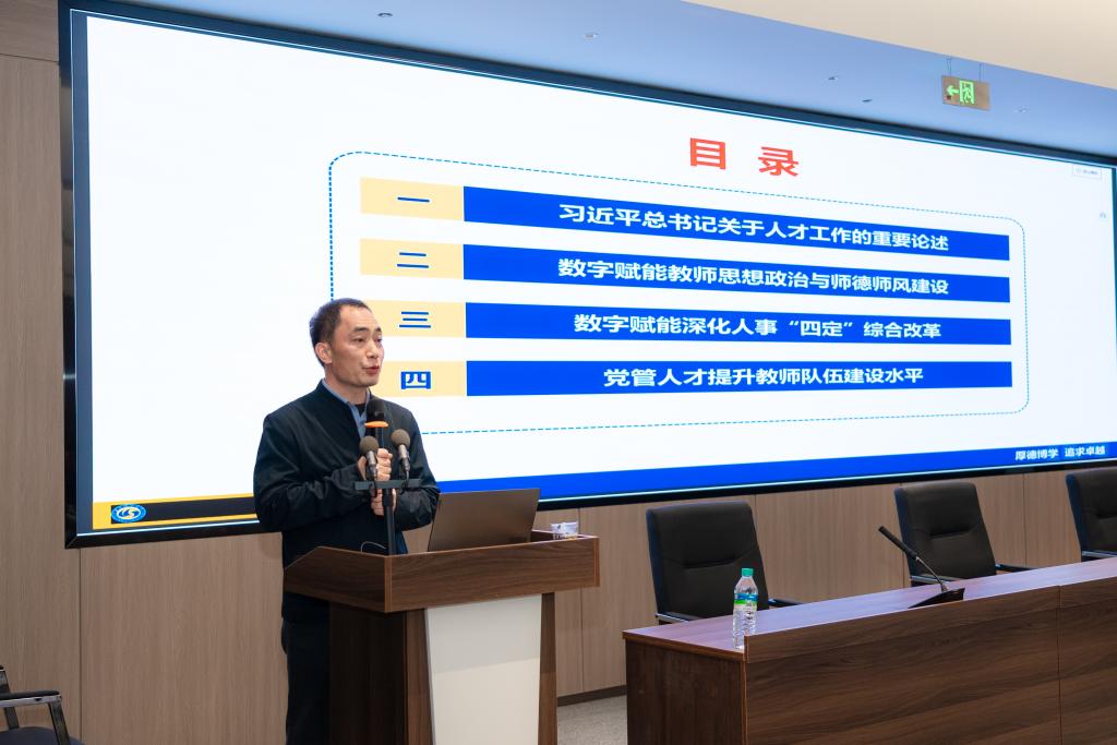 武汉理工大学在数字化治理方面理念先进、实践扎实,成效显著。培训期间,该校党委书记孟芳兵作《凝心聚力抢占教育数字化新赛道—争创数字化转型标杆大学的探索与实践》专题报告,深入阐释以数字化提升治理效能的核心要义。相关职能部门负责人系统分享了数字化在组织人事工作、教学改革、科研管理、学生管理、纪检监督等领域的应用经验,呈现了从顶层设计到场景落地的完整实践图谱。武汉科技大学王强教授针对医学教育革新展开前沿探讨,为医学与数字技术融合搭建思维桥梁。