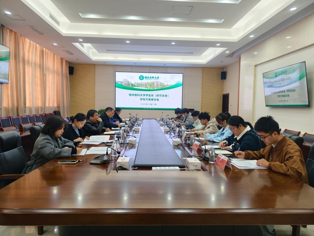 12月17日,学校党委书记马献力参加在临桂校区明德楼502会议室召开的学生会(研究生会)组织学生干部代表座谈会。