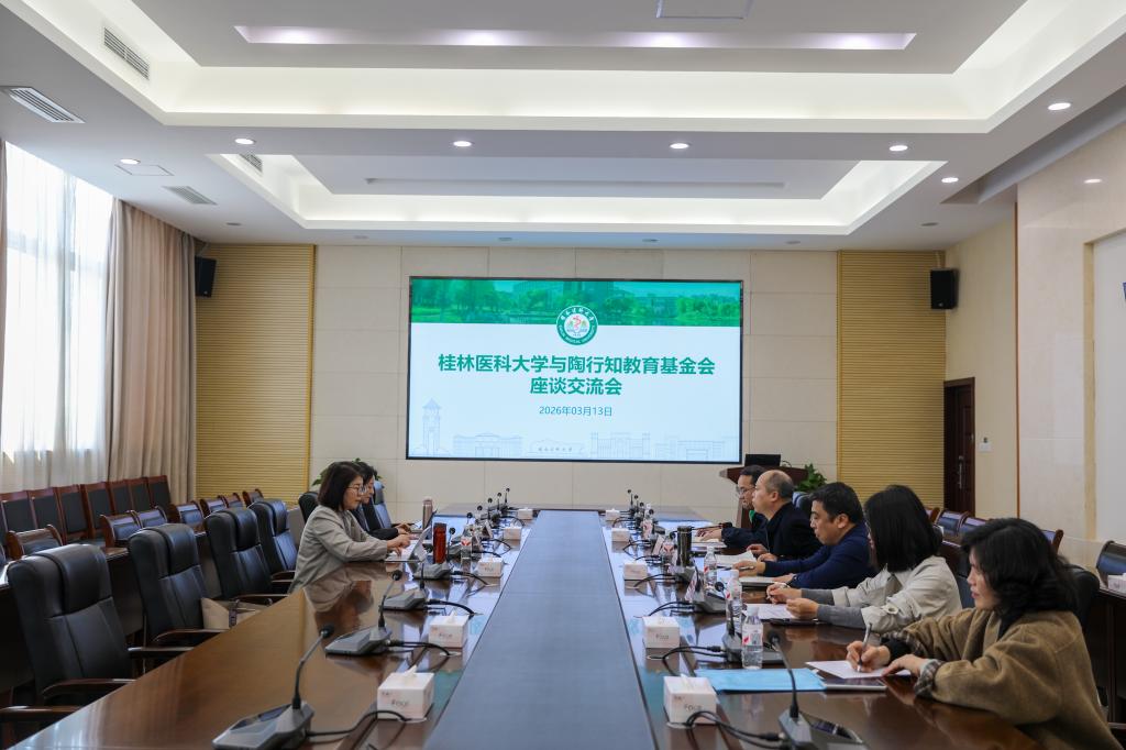 3月13日下午,陶行知教育基金会专项基金执行秘书长于会敏、顾问董赫敏一行到我校交流。座谈会在临桂校区明德楼502会议室进行,我校副校长覃克强出席会议,学生工作部(处)、护理学院相关部门负责人及护理学院毕业班辅导员参加座谈。