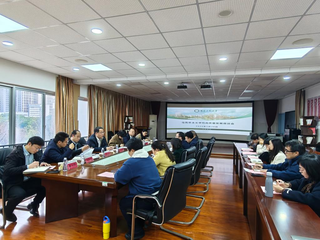 座谈会上,马克思主义学院主要负责人围绕树立和践行正确政绩观学习教育、“十五五”事业发展规划编制、思政课建设和马克思主义理论学科发展等方面的工作情况、存在问题及未来规划作了全面汇报。