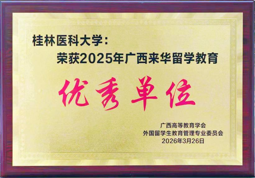 近年来,学校始终高度重视来华留学教育工作,紧紧围绕“培养知华友华的高素质国际医学人才”目标,深化来华留学生教育教学改革,不断完善培养体系、提升培养质量,推动来华留学生教育提质增效。此次获奖,既是对我校来华留学教育工作的肯定,也是对我校国际合作与交流工作的认可。下一步,学校将持续深耕“读懂中国·留学桂医”品牌建设,积极探索来华留学教育内涵式发展的新路径,推进学校教育国际化高质量发展,为“留学广西”建设贡献桂医力量。