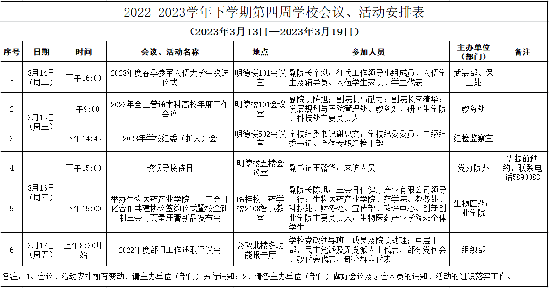 2022-2023学年下学期第四周学校会议、活动安排表(2023年3月13日—2023年3月19日)