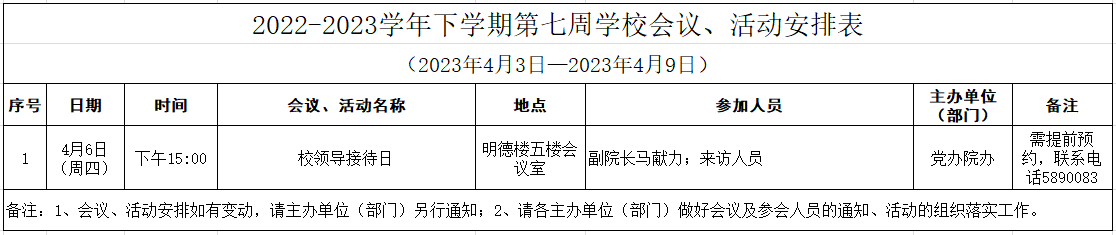 2022-2023学年下学期第七周学校会议、活动安排表(2023年4月3日—2023年4月9日)