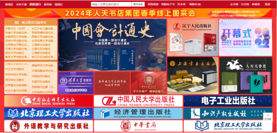 (一)主会场:其右上角展示图书采会开幕式领导讲话及平台消息发布。其他板块主要展示重点出版社书目,直接点击出版社名称即可进入选书界面。