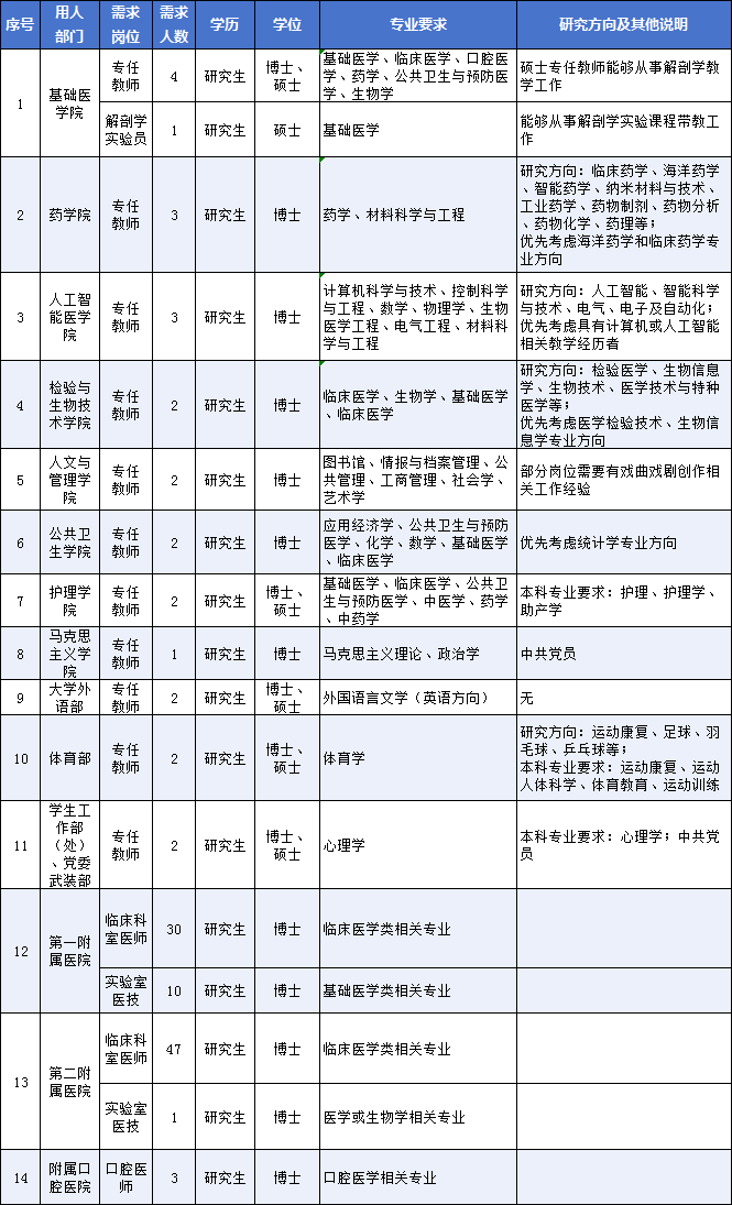 注:第一附属医院、第二附属医院、附属口腔医院的人才层次及条件根据各医院相关规定执行。