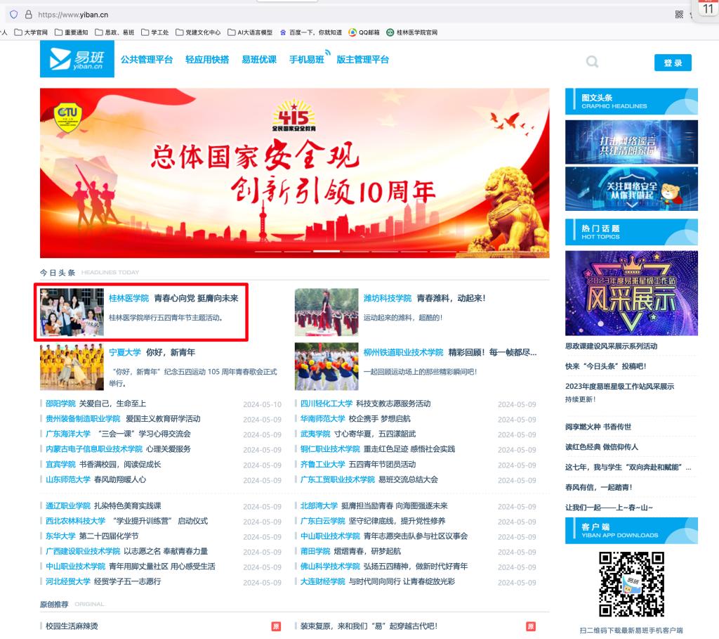 【易班网-全国头条】青春心向党 挺膺向未来——桂林医学院举行五四青年节主题活动