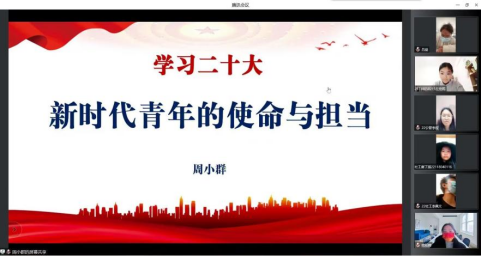 随后,周小群以《新时代青年使命和担当》做主题授课。她结合二十大精神,从担当时代使命的传统、新时代青年使命的内容和当代青年担当作为的表现等三个方面进行阐释,希望学院青年始终保持艰苦奋斗的前进姿态,将自身成长融入中华民族伟大复兴的历史长廊之中,成为“最好之青年”。