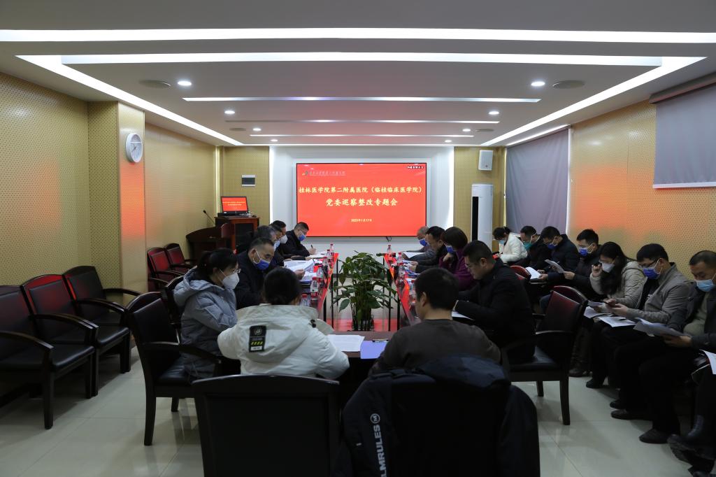 为贯彻落实学校党委巡察反馈意见,切实做好第二附属医院(临桂临床医学院)巡察整改工作,1月17日上午,第二附属医院在8号楼6楼会议室召开党委会,专题研究落实学校党委巡察反馈意见。医院党政领导班子出席会议,相关职能科室负责人列席会议。会议由医院党委书记葛波主持。