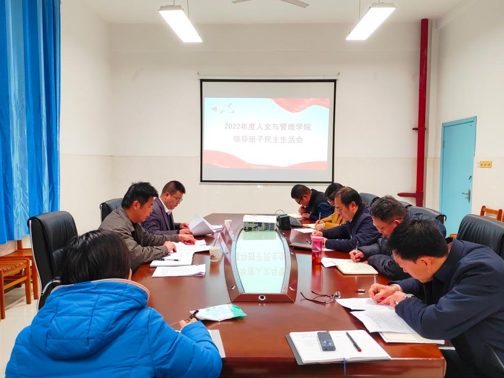 2月21日上午,人文与管理学院在人文楼108会议室召开2022年度党员领导干部民主生活会。学校党委常委、总会计师周国增,党委宣传部副部长刘梦青到会指导,学院领导班子成员参加会议,学院组织员、办公室负责人列席,会议由学院党委书记庞伟毅主持。