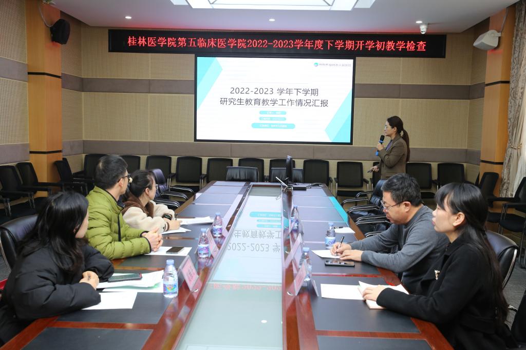 为保障新学期研究生教育教学工作有序进行,开学第一周,在校领导张志勇、王赣华、陈旭、辛懋、马献力、谢忠文、李清华的带领下,研究生学院对承担有研究生培养任务和教学任务的基础医学院、公共卫生学院、智能医学与生物技术学院等二级学院(系、部)以及附属医院、第二附属医院、附属桂林市人民医院等五家附属医院进行开学初研究生教育教学检查。
