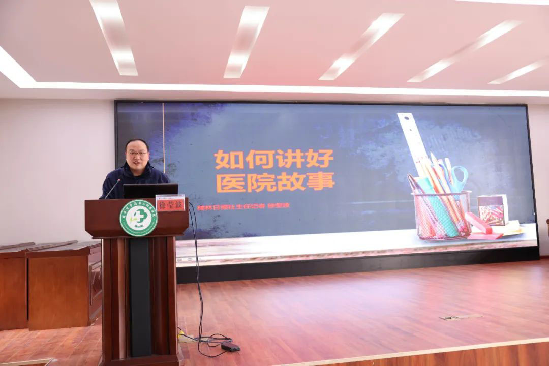 “如何讲好医院故事?”“医院新闻怎么写”“采写医院新闻注意哪些事项”……开班仪式结束后,桂林日报社经济县区部副主任、主任记者徐莹波为大家作新闻采写培训。他结合医院典型案例,生动阐述了新闻写作的方法和技巧,沉下去、接地气、捞“活鱼”,用心用情讲述医院故事。他指出,要顺应新媒体、新传播、新技术发展趋势,通过多种渠道开展健康传播,普及健康生活,主动向用户推送相关的健康信息。