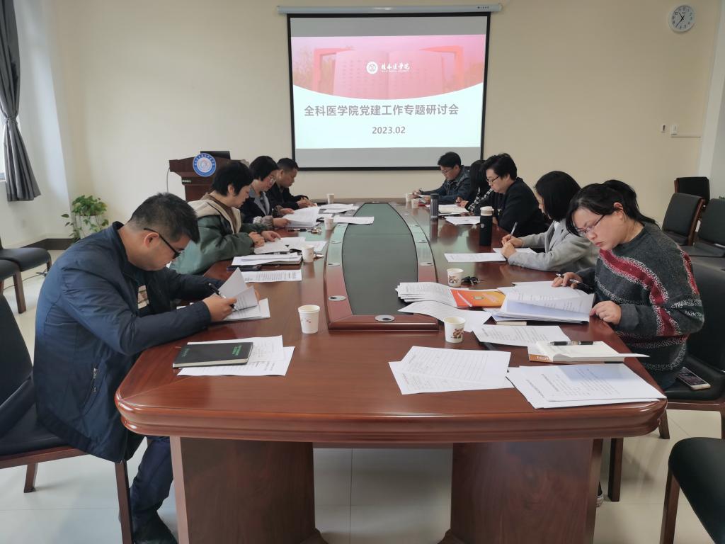2月28日,全科医学院召开党建工作专题研讨会。学院党委书记马明霞、院长郑楚、党委副书记潘涛、专职组织员、全体教职工党员参加会议,会议由潘涛主持。