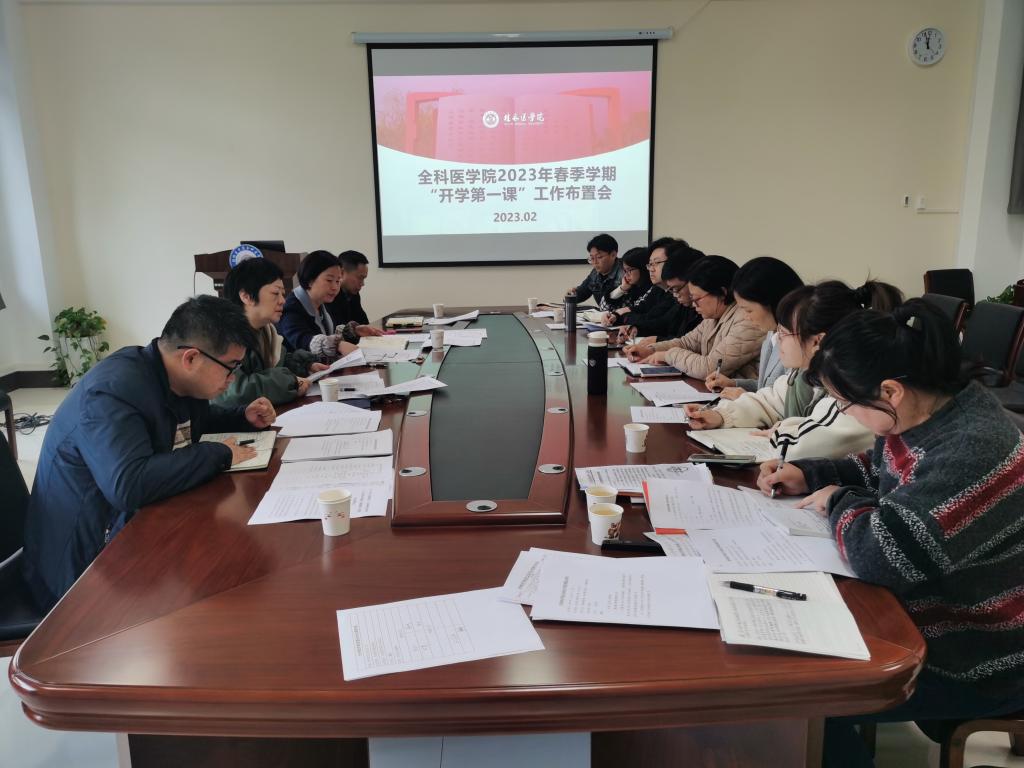 2月28日上,全科医学院在学院211会议室召开2023年春季学期“开学第一课”工作布置会。学院党委书记马明霞、院长郑楚、党委副书记潘涛、专职组织员、全体教职工参加会议,会议由潘涛主持。