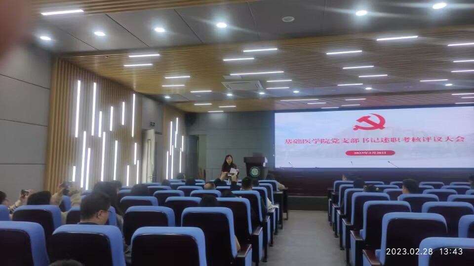 为落实新时代全面从严治党要求,抓实学院党建工作,以高质量党建引领学院事业发展,近日,基础医学院党委在科学实验中心报告厅召开2022年度党支部书记述职评议会议。会议由党委书记朱开梅主持。基础医学院党委委员、党支部书记、专职组织员、党员代表、群众代表参加会议。