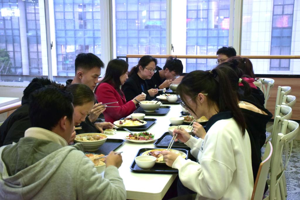 最后,领导老师与学生代表在春华苑食堂共进晚餐,更近距离、面对面与同学们开展平等亲切地交流,进一步聚焦学生实际需求,切实回应学生现实关切,密切了师生联系。