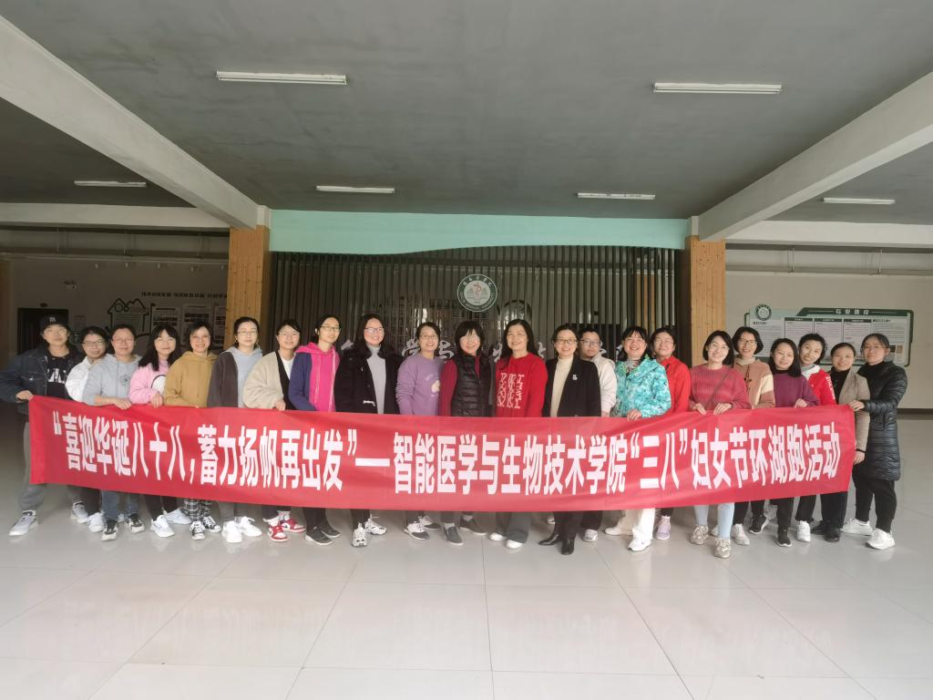 为庆祝“三八”国际劳动妇女节,迎接桂林医学院建校88周年,智能医学与生物技术学院分工会于3月6日下午在临桂校区举行“喜迎华诞八十八,蓄力扬帆再出发”——“三八”妇女节环湖跑活动。智能医学与生物技术学院全体女教职工参加活动。