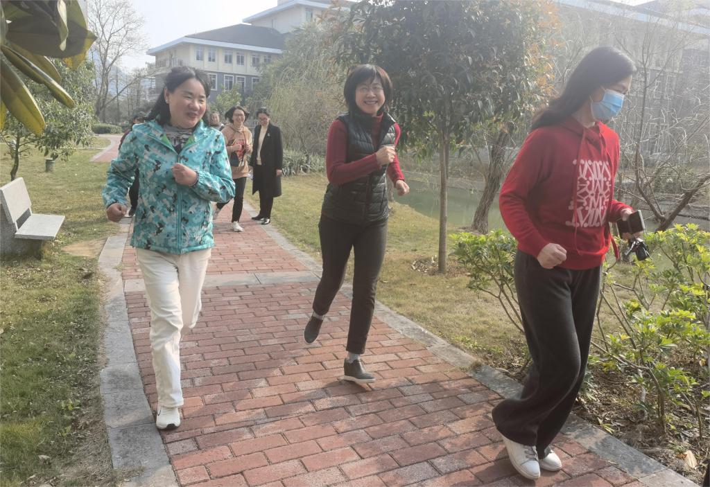 女教职工围绕学校环湖水系跑步,在欣赏美丽的校园风景的同时又锻炼了身体,磨炼了意志,用文明、健康、绿色的方式庆祝“三八”妇女节的到来,一路欢声笑语,其乐融融。同时,在校庆日即将到来之际,她们通过录制短视频表达了对学校八十八华诞的美好祝福。