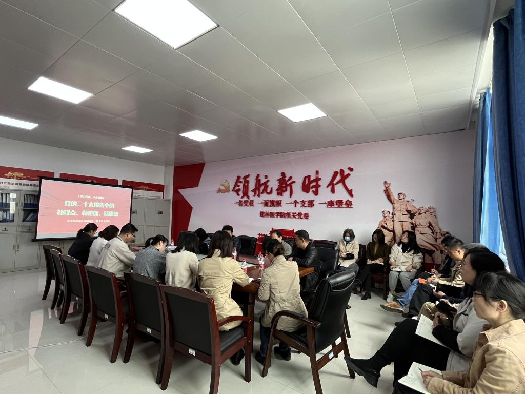韦日明强调,学习宣传贯彻党的二十大精神是当前和今后一个时期的首要政治任务,广大党员要提高政治站位,推动学习宣传贯彻党的二十大精神与部门中心工作相融合,切实为我校高质量发展提供坚强的组织保障。