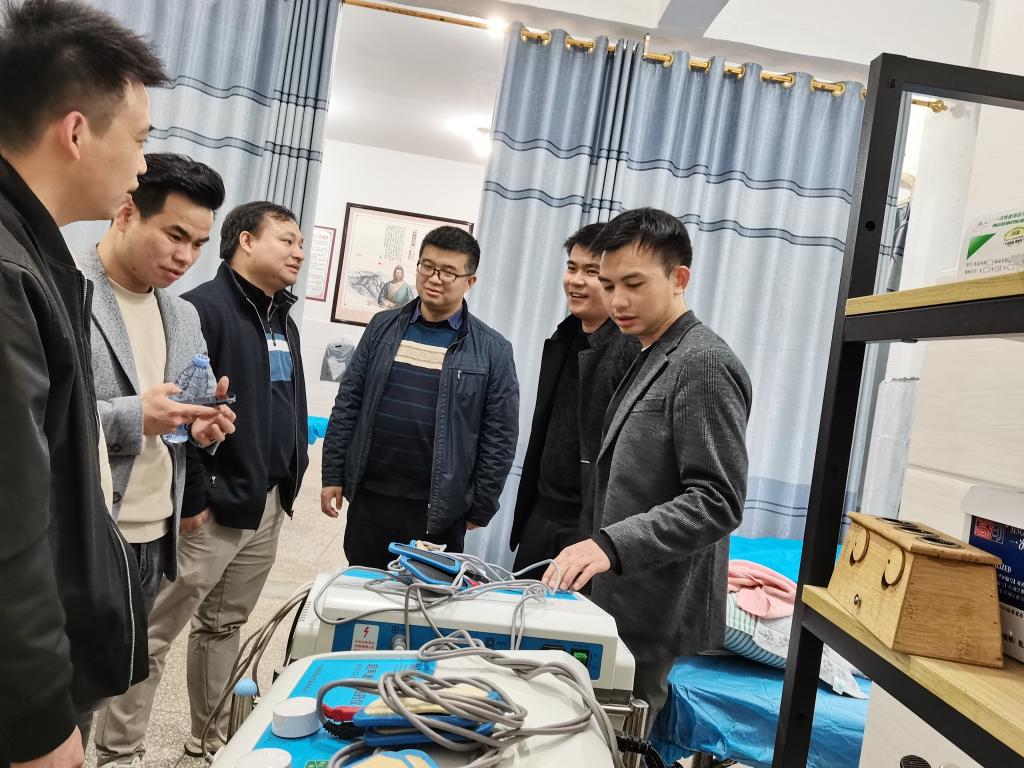 学习交流团深入恭城县西岭镇中心卫生院、临桂区五通镇中心卫生院进行实地参观学习,在2010级校友陈佳(西岭镇中心卫生院主持工作副院长)、2011级校友莫益强(五通镇中心卫生院副院长)的带领下,实地查看了住院部、门诊部、手术室、中医康复科等部门的实际运营和管理设置等。学习交流团从医院建设管理、医疗服务能力提升、医疗质量管理、综合目标考核、人才队伍建设等方面进行了深入探讨与交流,相互学习,共同进步。