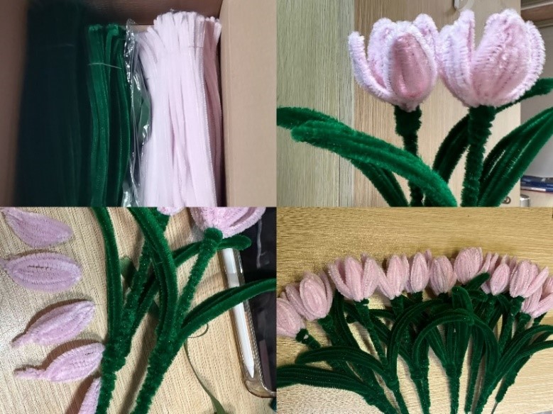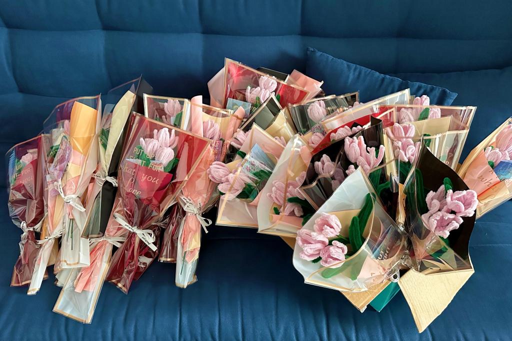 节日来临之前,同学们通过视频教程的学习,从花材的购买、花瓣花叶的制作到花束的包扎,积极踊跃、精心雕琢,一束束精致的花束完美诞生。大家纷纷感慨道:“今年的妇女节活动充满了心意和新意,能让大家充分融入进来,不仅学到了新技能,还表达了我们对老师们的尊重和爱戴,真是一件非常有意义的事情。”