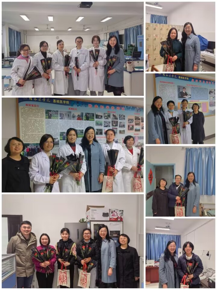 3月8日下午,基础医学院党委书记朱开梅代表学院为女教职工赠送鲜花致以节日问候和衷心感谢。她指出,广大女教职工秉承初心使命,柔肩扛重任、巾帼显担当,立足岗位建功出彩,在教书育人、学科建设、科技创新、服务社会方面切实发挥了“半边天”的积极作用。希望大家继续秉承“弘德善医”校训精神,以饱满的热情和充足的干劲投身于学院和学校事业,以“巾帼不让须眉”的拼搏精神创造出骄人业绩,展现新时代女性靓丽风采。
