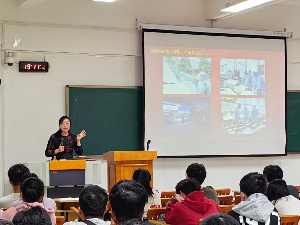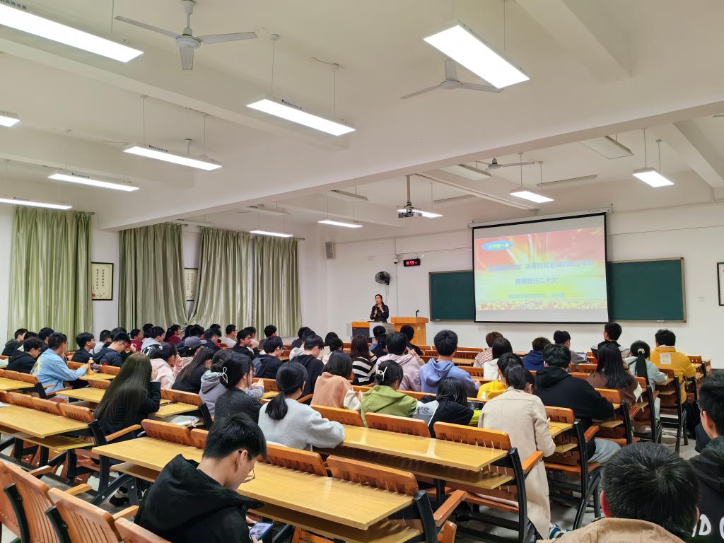 为进一步加强青年学生思想政治教育,基础医学院以学习宣传贯彻党的二十大精神为导向,结合学校工作部署,开展以“开学第一课”为重点的系列教育引导活动。3月7日晚,基础医学院党委书记朱开梅在临桂校区教学北楼209教室作了以“坚定理想信念、永葆对党忠诚的政治本色、青春践行二十大”为主题的“开学第一堂思政课”活动。基础医学院100多名学生代表参加活动。