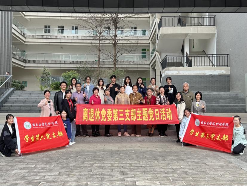 在全校全面深入学习贯彻党的二十大精神,喜迎建校88周年之际,护理学院与离退处于3月10日在临桂校区大学生活动中心411开展了“学习二十大 共话新时代”主题党日支部共建活动,离退处第三党支部和护理学院学生第六党支部、学生第三党支部的党员、入党积极分子代表参加活动。出席此次活动的领导嘉宾有离退处党委副书记李荔,护理学院党委副书记谢勇志,原学校工会主席、离退处第三党支部书记叶曼琪等。