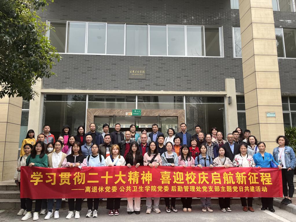 为深入学习贯彻党的二十大精神,在学校88周年校庆来临之际,3月10日下午,公共卫生学院党委、离退休党委和后勤管理处党支部联合开展主题为“学习贯彻二十大精神,喜迎校庆启航新征程”的主题党日共建活动。校离退休党委的老党员、后勤管理处和公共卫生学院的师生代表出席了本次活动。