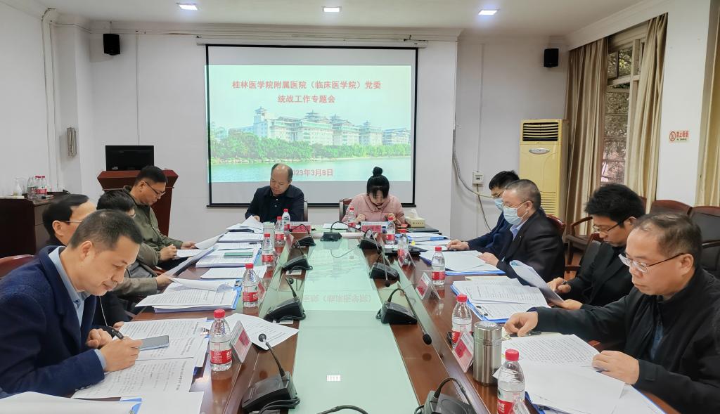 为深入贯彻落实《中国共产党统一战线工作条例》和中央统战工作会议精神,学习贯彻习近平总书记关于做好新时代党的统一战线工作的重要思想,充分发挥统一战线优势,推动医院统战工作再上新台阶,3月8日上午,附属医院(临床医学院)党委在乐群校区行政二楼会议室召开统战工作专题会。会议由医院党委书记覃克强主持。