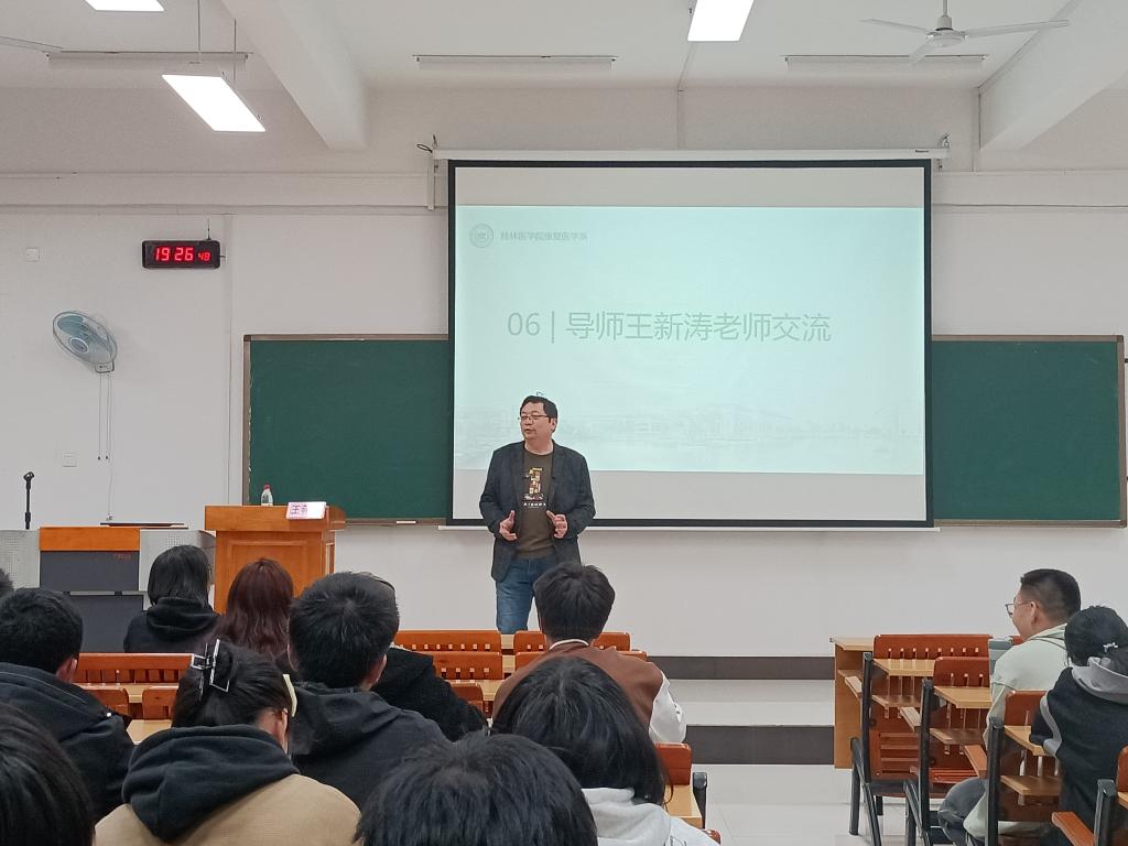 3月12日晚,康复医学系副主任王新涛与2022级康复治疗学本科班全体学生在临桂校区教学北楼406室开展导师交流会。王新涛介绍康复治疗学专业发展现状和前景,勉励同学们制定学习目标、规划职业生涯。