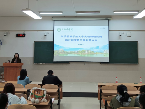 为提高医学检验专业学生的科研创新能力,有效推进医学检验专业医教融合、产教协同的人才培养模式,3月14日下午,医学检验学院在临桂校区教学南楼S202教室举办2023年大学生创新创业训练计划项目申报动员大会。医学检验学院邀请了学校教学医院检验学科、IVD 企业的多名优秀老师参与学院“大创”项目的指导,医学检验学院院长刘洪波、科研管理助理何韵怡,迈瑞公司学术经理蒋欣妮等以及各年级近120名学生参加会议。