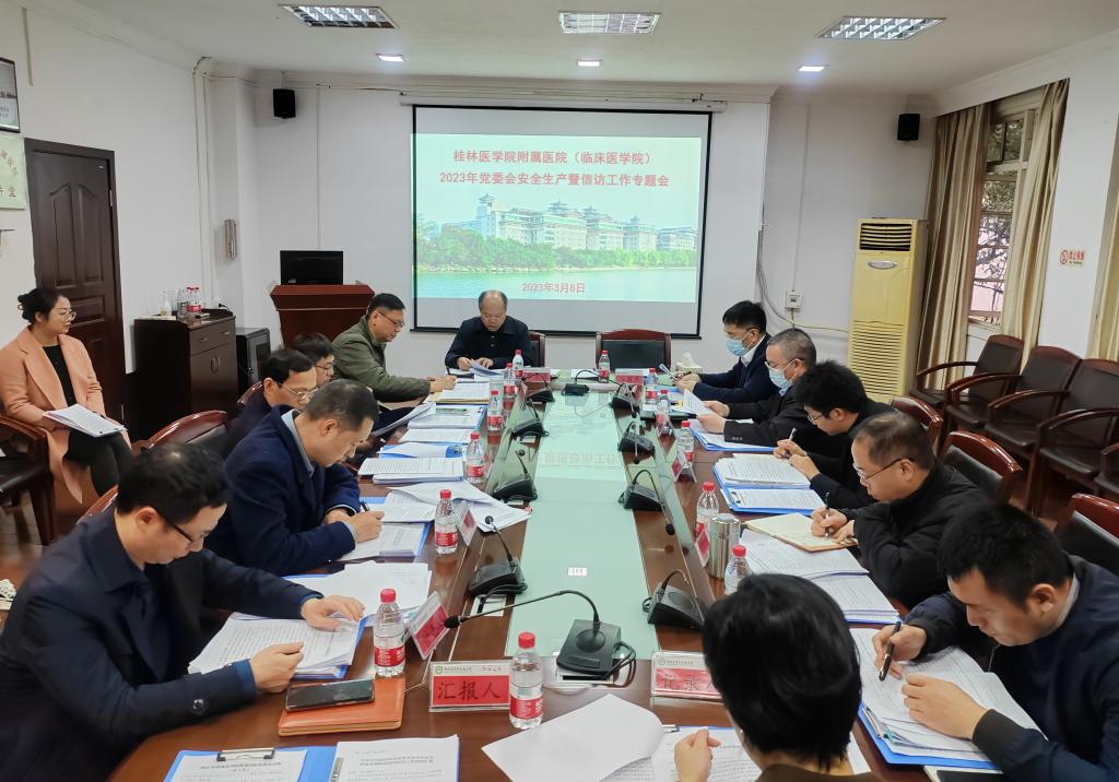 会上,覃克强领学“第一议题”《信访工作条例》并传达《自治区卫生健康委办公室关于加强医疗卫生机构建设施工安全生产管理的通知》《全国两会期间全区事故防范预警》文件精神。会议听取了医院安全生产暨信访工作汇报,审议通过了《关于成立桂林医学院附属医院信访工作领导小组的通知》,并就进一步做好医院安全生产暨信访工作进行了部署。