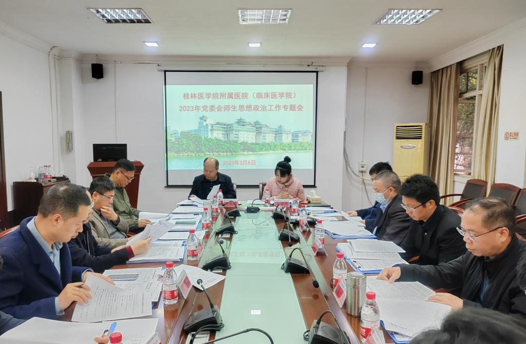 为进一步强化师生思想政治工作,增进工作实效,近日,附属医院(临床医学院)党委在乐群校区行政二楼会议室召开师生思政工作专题会。本次会议由医院党委书记覃克强主持。
