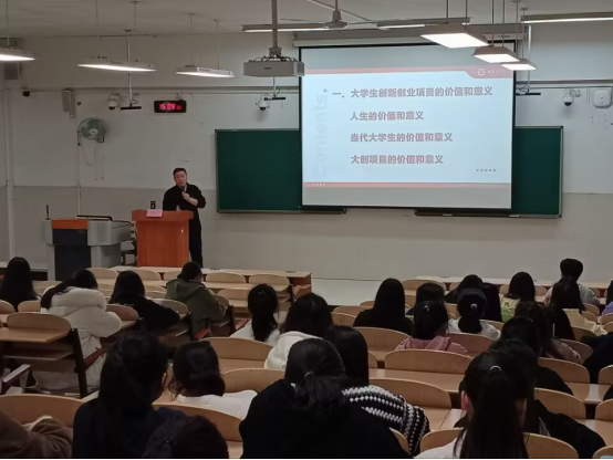 讲座上,郭振友就“如何撰写大学生创新创业项目书”与“大学生创新创业过程中有哪些常见问题”这两个问题展开讲述。他特别指出创新项目和创业项目是两种类型,写创新项目需要注意立项依据和研究目的、内容的撰写,创业项目则需要注意针对市场需求进行。最后,他鼓励同学们积极参与创新创业大赛,积累经验,为将来就业打下坚实的基础。