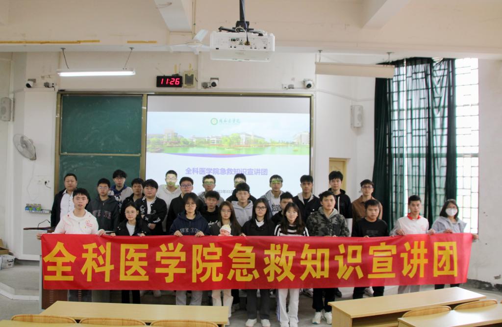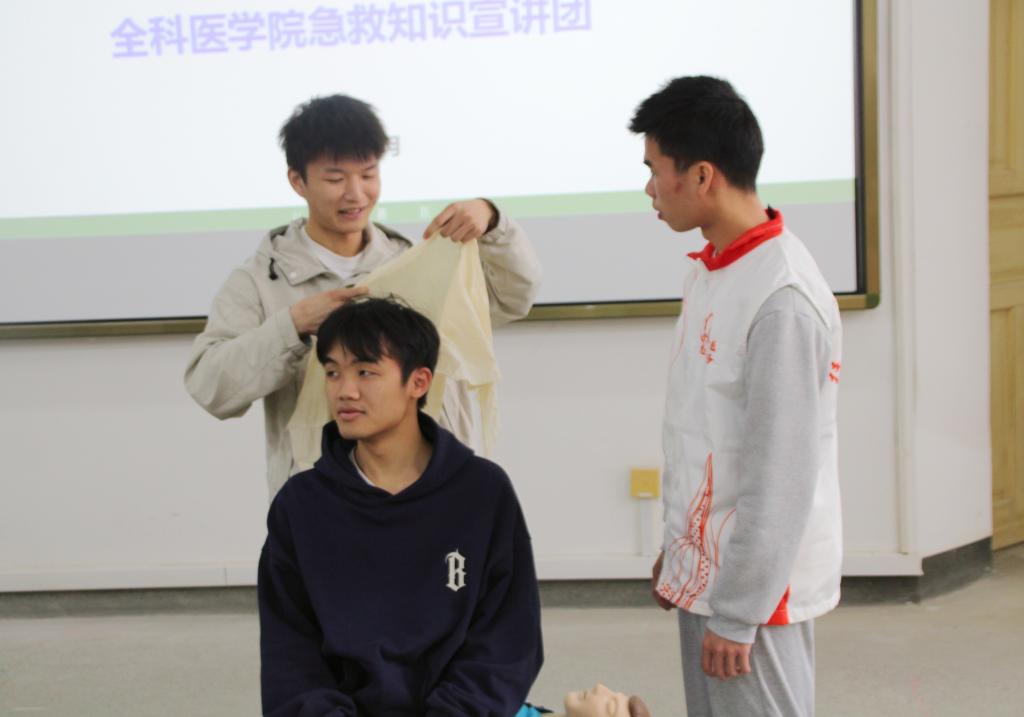 为普及应急救护知识,增强广大师生应急救护意识,提高面对意外事故发生时的应急能力,推进平安校园的建设。全科医学院急救知识宣传团走进桂林理工大学课堂,给机械与控制工程学院2022级新生进行心肺复苏抢救、海姆立克急救法及急救现场包扎等相关急救知识培训。详细讲解了急救技术的操作要点及注意事项,并通过实操进行了同步演示。内容包括成人、婴幼儿心脏骤停和气道异物梗阻的判断,急救具体的操作方法,头顶帽式、单眼、双眼、单肩、双肩、单侧胸、胸背式、大手挂、小手挂等止血包扎方法。在场学生积极踊跃上台进行了现场操作演练,宣讲团成员手把手指导学生们的动作。学生通过亲自操作、亲身体验进一步巩固所学知识,掌握了现场急救的基本技能,进一步提高处理突发事件的能力,为生命安全保驾护航。