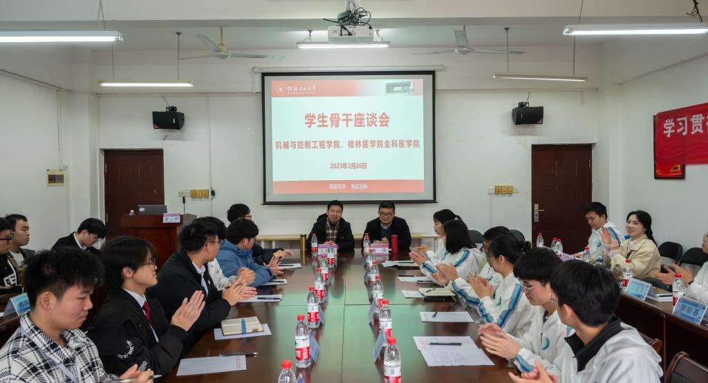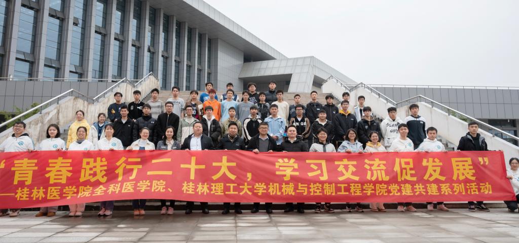 为进一步学习宣传贯彻党的二十大精神,以互学共建为目的,进一步推动团学工作提质增效,3月26日,全科医学院受邀前往桂林理工大学机械与控制工程学院,开展“青春践行二十大,学习交流促发展”党建共建系列活动。全科医学院党委副书记潘涛,桂林理工大学机械与控制工程学院党委副书记王迎波,双方学院辅导员、学生共200余人参加结对共建活动。