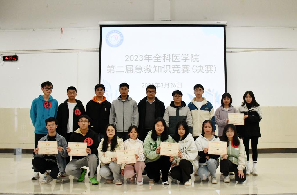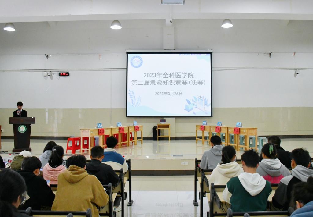 为深入学习贯彻落实党的二十大精神,推进健康中国行动,加强突发救治体系和应急能力建设,3月26日下午,全科医学院第二届急救知识竞赛决赛在临桂校区教学楼南楼多功能报告厅举行。此次大赛特邀全科医学院学工办何金宝、学校红十字会学生分会会长梁晨、全科医学院2019级全科医学本科班盘兴平担任评委。全科医学院党委副书记潘涛、学工办辅导员、2022级全科班班级导师邝彤东博士、学院各班级学参加活动。