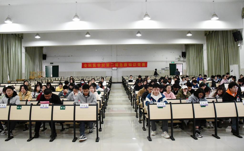 潘涛为本次大赛致辞。他表示,开展急救知识竞赛,有助于提高学生紧急避险意识和应急救护能力,保证我们在应对突发情况时,可以现场挽救生命和降低伤害程度。同时,他希望同学们能以赛促学,掌握急救技能,为成为未来优秀的医务工作者而努力。