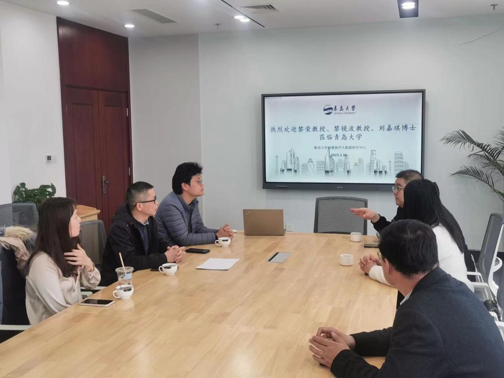 为建设发展一流学科,争取优质资源、创新团队建设,桂林医学院广西高校环境污染物研究与组学分析重点实验室团队积极与青岛大学健康医疗大数据中心黄琛博士团队进行学习和交流,以整合双方的优势资源共同开展教学、科研、人才交流等多方面的深入合作。本次交流合作在基础医学院院长陈健的指导下,由黎荣和黎镜波博士带队,其他团队骨干成员包括刘嘉琪、管笑博士等优秀青年教师,计划联合建立一个精准组学数据库分析平台,促进双方健康医疗大数据的资源共享和人才培养。
