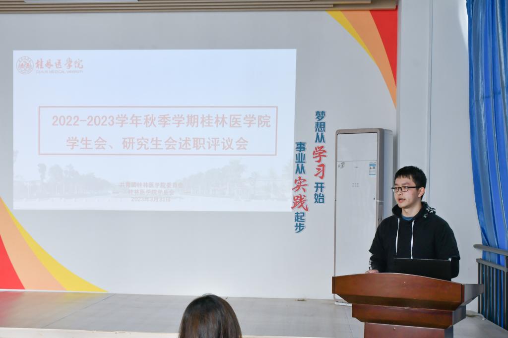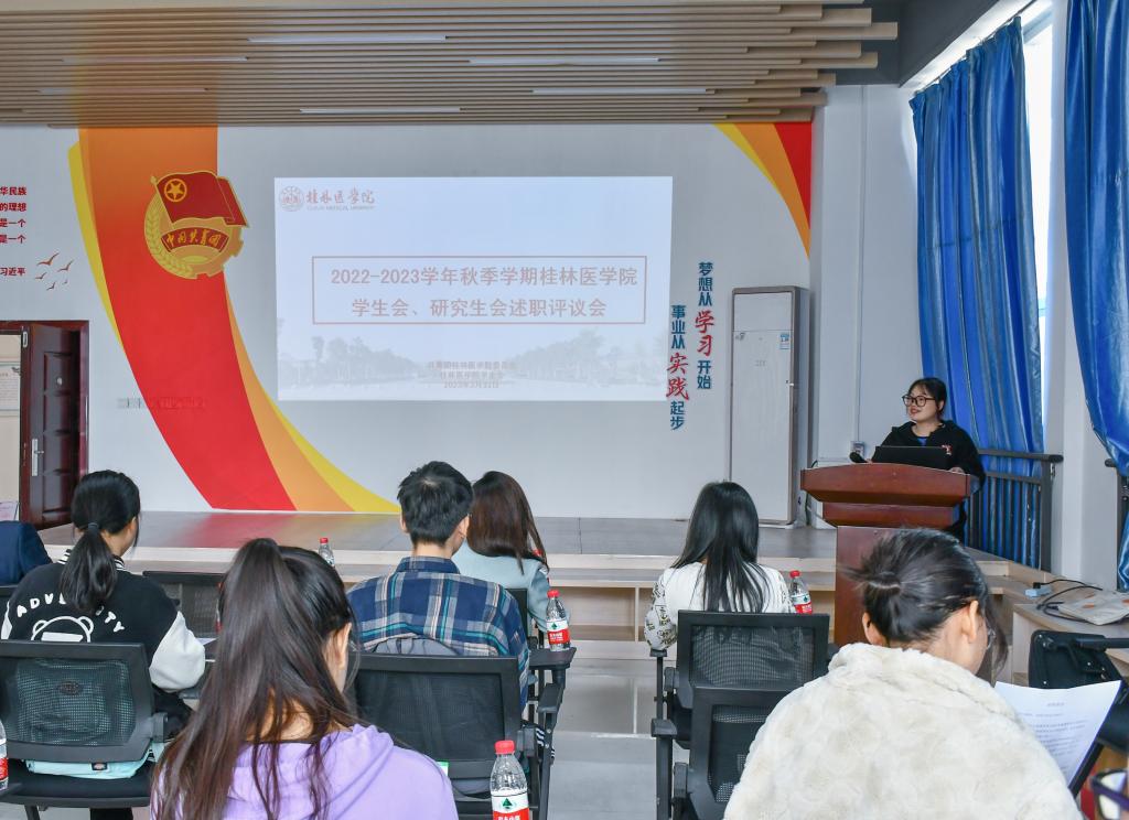 为贯彻落实团中央、教育部、全国学联联合印发的《关于推动高校学生会(研究生会)深化改革的若干意见》的相关要求,落实学校学生会、研究生会述职评议制度,3月31日,校团委在临桂校区大学生活动中心209室召开学生会、研究生会2022—2023学年秋季学期述职评议会。由学生工作部、研究生工作部、校团委等教师代表和学生常任代表组成的述职评议小组,听取学生会、研究生会主席团成员的述职报告。